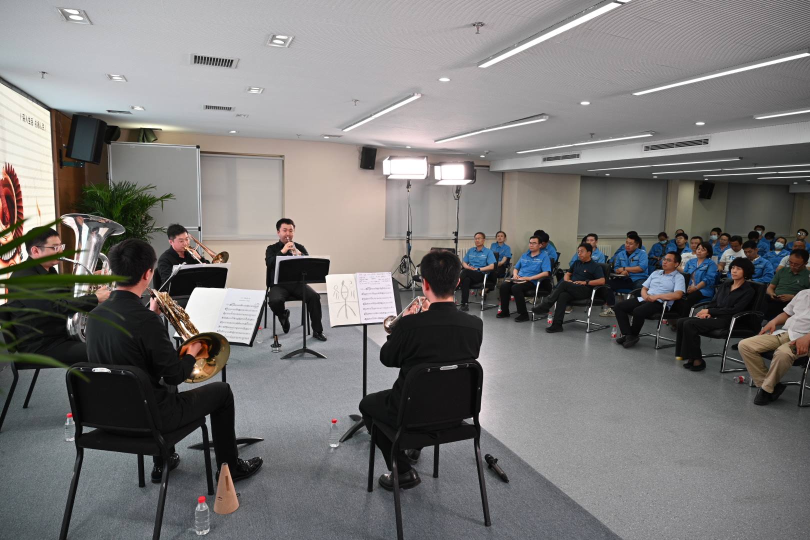 5月17日,国家大剧院五月音乐节公益演出走进阿苏卫生活垃圾焚烧发电厂,艺术家们为环卫工人带来了一场精彩的铜管五重奏音乐会。集团领导,昌平区城管委、昌平区百善镇和小汤山镇有关领导以及阿苏卫园区公司、金年汇装备公司、昌平公司、平谷公司一线职工代表等近百人参加活动。