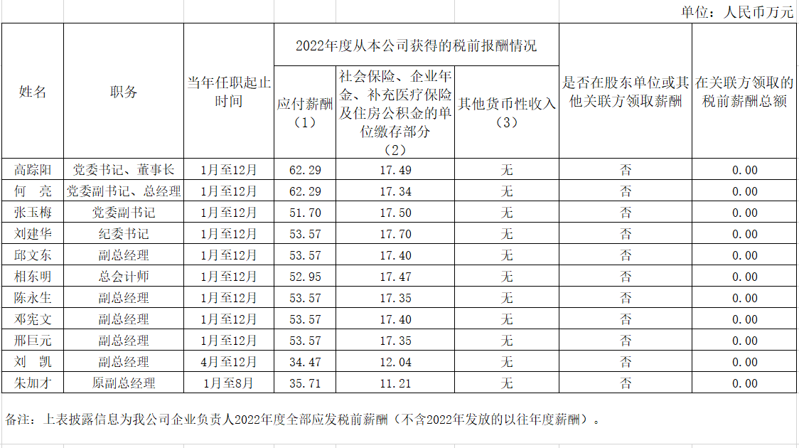 金年汇集团有限公司企业负责人2022年度薪酬情况