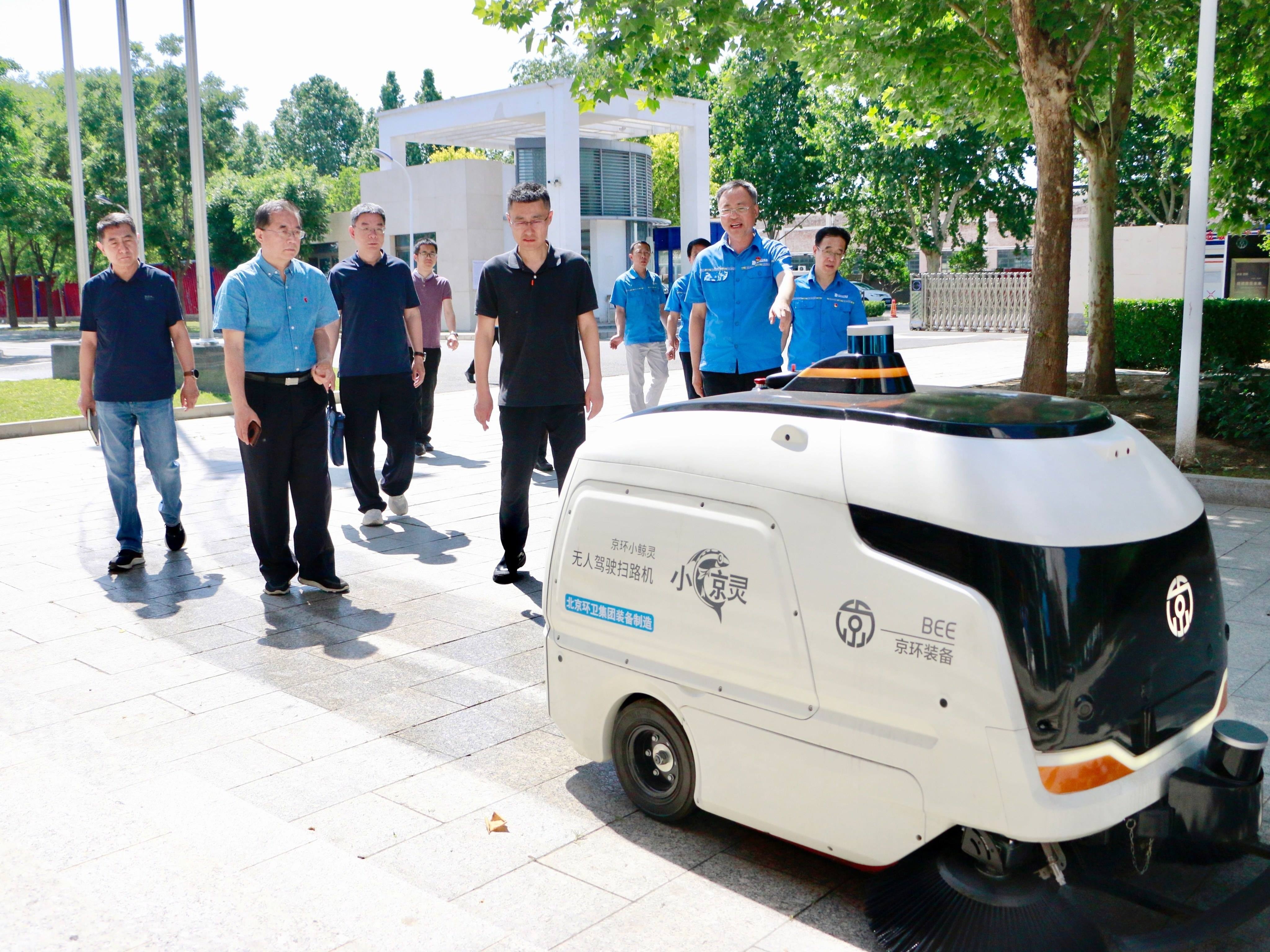 在金年汇装备公司,督察组一行详细问询关于新能源环卫产品及自动驾驶产品的情况,并实地观摩作业车辆演示,亲身体验无人驾驶车辆。通过深度互动体验,督察组对金年汇装备公司在环卫技术创新方面取得的成果有了深入了解。