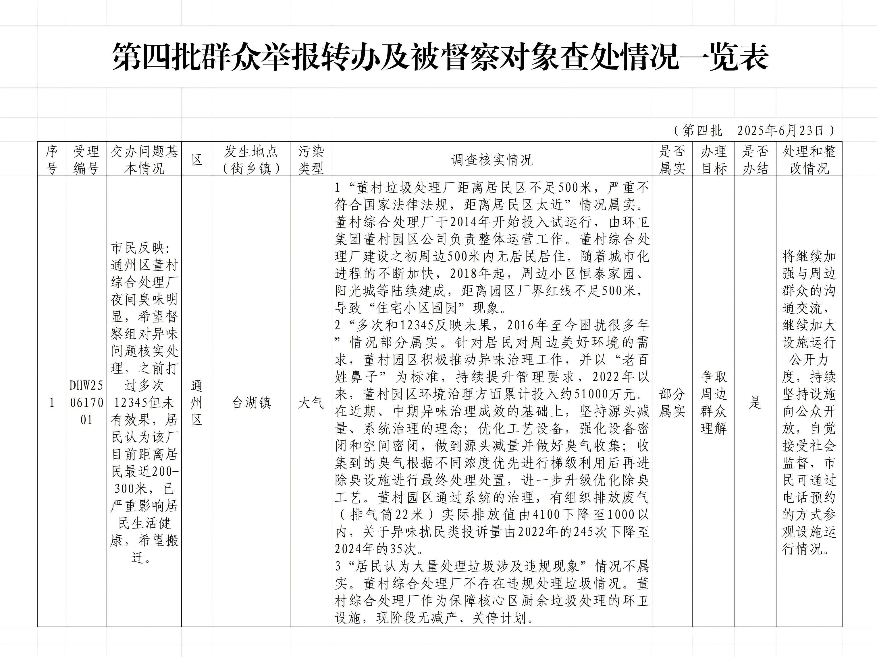 第一批群众举报转办及被督察对象查处情况一览表