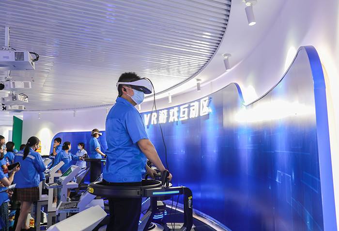 中厅分为四个展示区域,分别是“认识生活垃圾”“生活垃圾焚烧发电”“阿苏卫的社会价值”“城市因我更美丽”。参观人员通过短片介绍和数据对比,直观地掌握了各种垃圾处理技术的优缺点,深刻认识到垃圾分类工作的紧迫性和必要性。在VR游戏互动区,大家戴上VR眼镜、站上3D站台,沉浸式地进行了垃圾焚烧处理全流程的体验,“看”到了焚烧工艺运行的真实样貌。