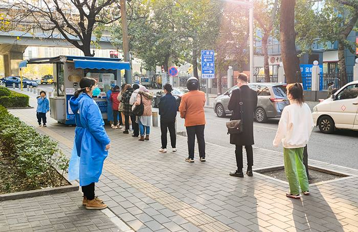 “请大家佩戴好口罩、保持两米间距、提前出示健康码,有序排队进行核酸检测……”在社区核酸检测点,有的下沉干部化身社区“大喇叭”,维持现场秩序。维持秩序看似简单,实际上考验着每一名工作人员的眼力和耐心。长长的队伍中,常有人不规范佩戴口罩,这就需要下沉人员用心观察,快速扫描,抓紧提示。为提高核酸检测效率,“大喇叭”还需提醒忘带身份证的人员扫描现场登记二维码。“小姑娘,我没带身份证,这个怎么操作?”“您好,我老伴坐着轮椅,这台阶上不去呀。”市民遇到难题,下沉干部们总是第一时间上前帮忙。