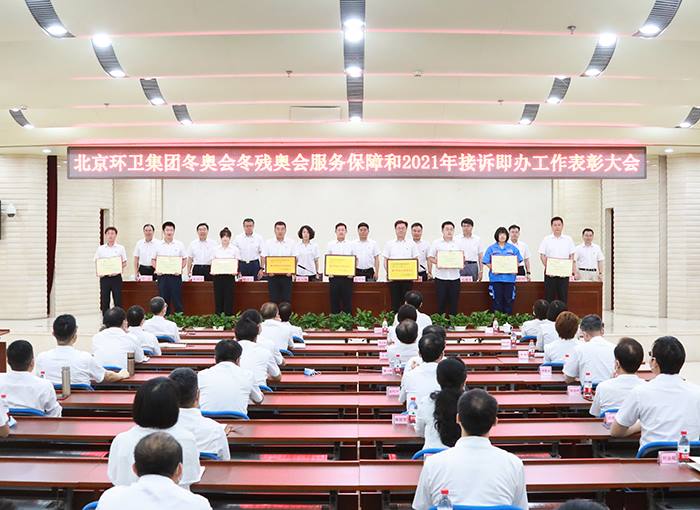 会上宣读了冬奥会冬残奥会服务保障和2021年接诉即办工作表彰决定。集团生产运营部、北京机扫公司、固废物流公司、南宫生物质公司、金年汇境河北分公司5家单位被授予冬奥会冬残奥会服务保障工作突出贡献集体荣誉称号;集团党委宣传部、监察专员办公室等16家单位被授予优秀集体荣誉称号;刘亚淘等168名同志被授予先进个人荣誉称号。北京机扫公司、通州金年汇公司、固废处理公司阿苏卫填埋场3家单位被授予集团2021年接诉即办工作先进集体荣誉称号;田泽宇等7名同志被授予先进个人荣誉称号。集团领导分别为受到表彰的突出贡献集体、优秀集体和先进个人代表颁奖。