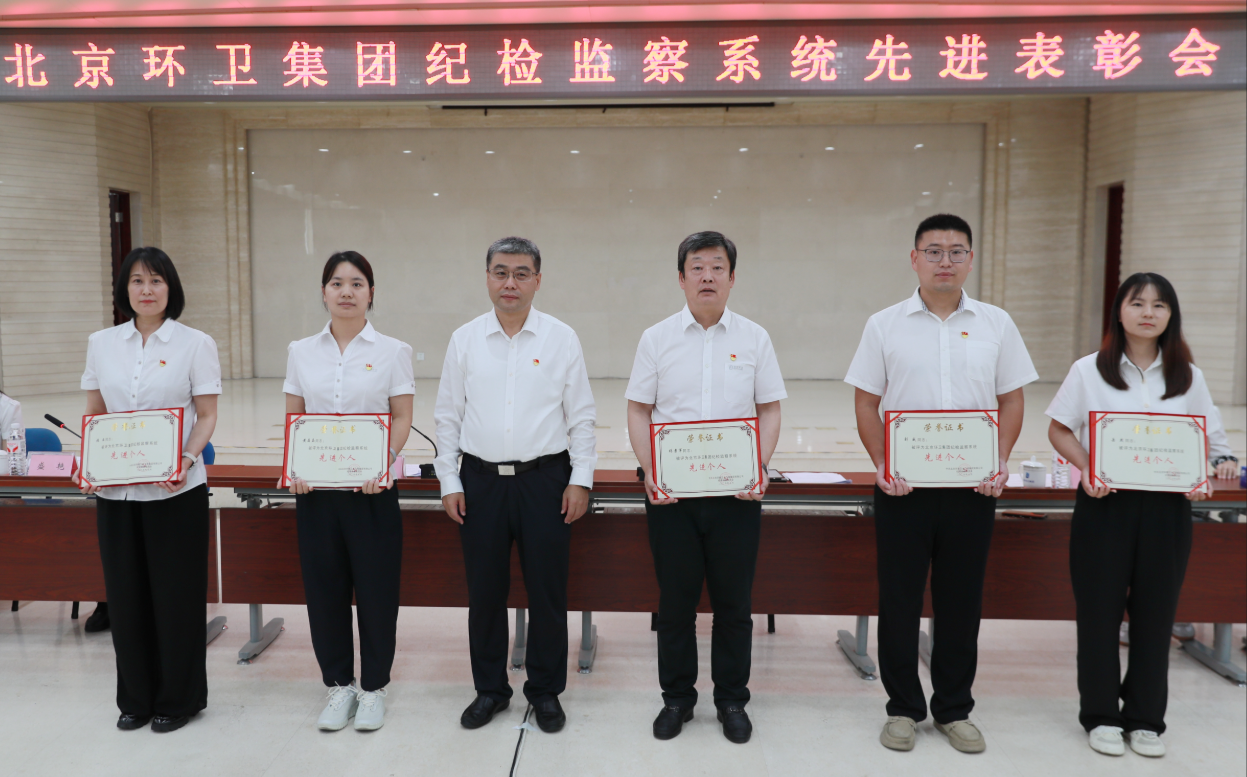 为进一步树立纪检监察干部队伍的良好形象,激励集团各级纪检监察机构和广大纪检监察干部奋发进取,担当实干,集团纪委近期开展了纪检监察系统先进集体和先进个人评选工作,并在会议现场进行了表彰,苗传斌同志宣读了《关于表彰北京环卫集团纪检监察系统先进集体和先进个人的决定》,授予北京城市机扫服务有限公司纪委等3个单位“北京环卫集团纪检监察系统先进集体”、北京环卫集团环卫服务有限公司纪委书记张景军等6名同志“北京环卫集团纪检监察系统先进个人”。集团党委书记、董事长何亮,纪委书记苗传斌分别为先进集体代表和先进个人颁奖。